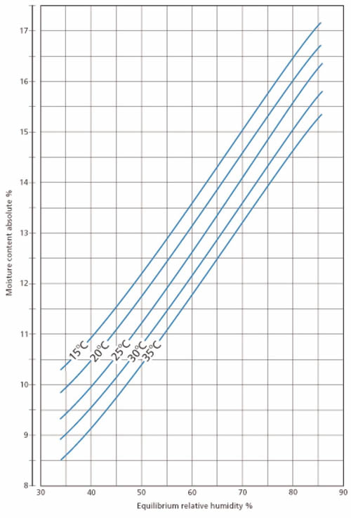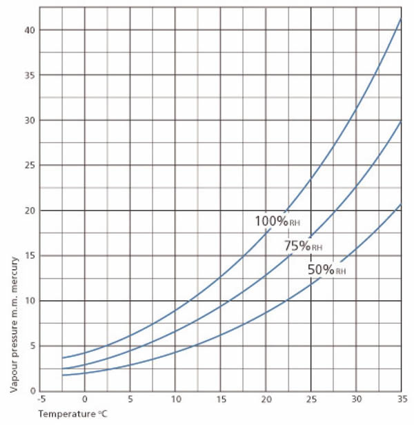 Condensación Si el aire se enfría hasta alcanzar el punto de saturación (100% de humedad relativa), entonces se verá humedad depositada en forma de gotitas o vaporización, es decir, ocurrirá la condensación. Exudación de bodega Si el aire dentro de la bodega de un buque está caliente y hace contacto con la cabecera de cubierta, la cual se ha enfriado por efecto de la atmósfera exterior, donde la temperatura del aire cerca a la superficie de la cabecera de cubierta pueda reducirse por debajo de la temperatura a la cual se alcance la presión de vapor de saturación para esa cantidad de agua en particular, es decir, 100% de humedad relativa, entonces se formará condensación de forma normal sobre la cabecera de cubierta en forma de exudación. Humedad relativa de equilibrio (actividad del agua) Punto de equilibrio Todo material biológico normalmente contiene una cierta cantidad de agua. La cantidad de humedad presente en todo y cualquier momento es conocida como contenido de humedad. Si el material entra en contacto con aire seco, entonces tendrá la tendencia a perder una pequeña porción de su contenido de agua que irá al aire en forma de vapor de agua. Este proceso continuará hasta que se alcance un “equilibrio" del aire en contacto con material con ese contenido particular de humedad y a esa temperatura en particular. La humedad relativa de equilibrio a menudo se le conoce como “actividad del agua”. La antes mencionada se mide en proporción en lugar de porcentajes, por consiguiente, la humedad relativa de equilibrio al 50% es equivalente a una actividad del agua de 0.5.